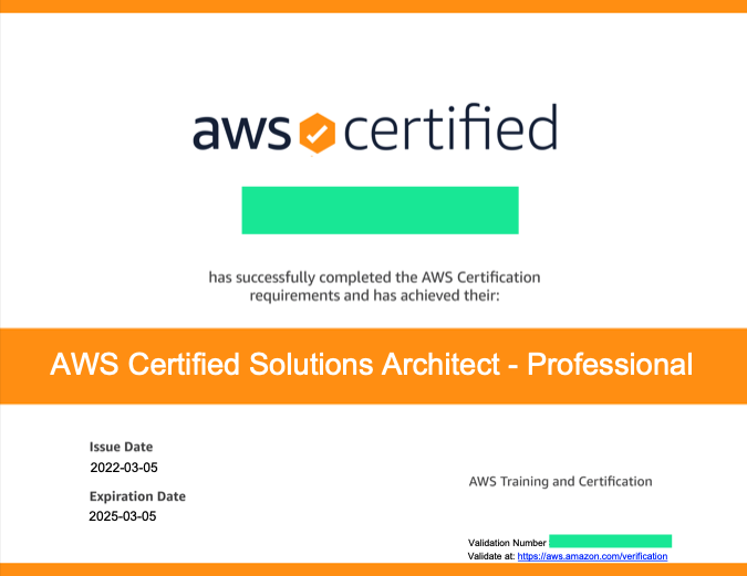 自分的に最大目標であったAWS認定のプロフェッショナルレベルの最難関資格、『ソリューションアーキテクト - プロフェッショナル』(AWS Certifed Solutions Architect - Professional: SAP)に、2022年3月に合格することができました。